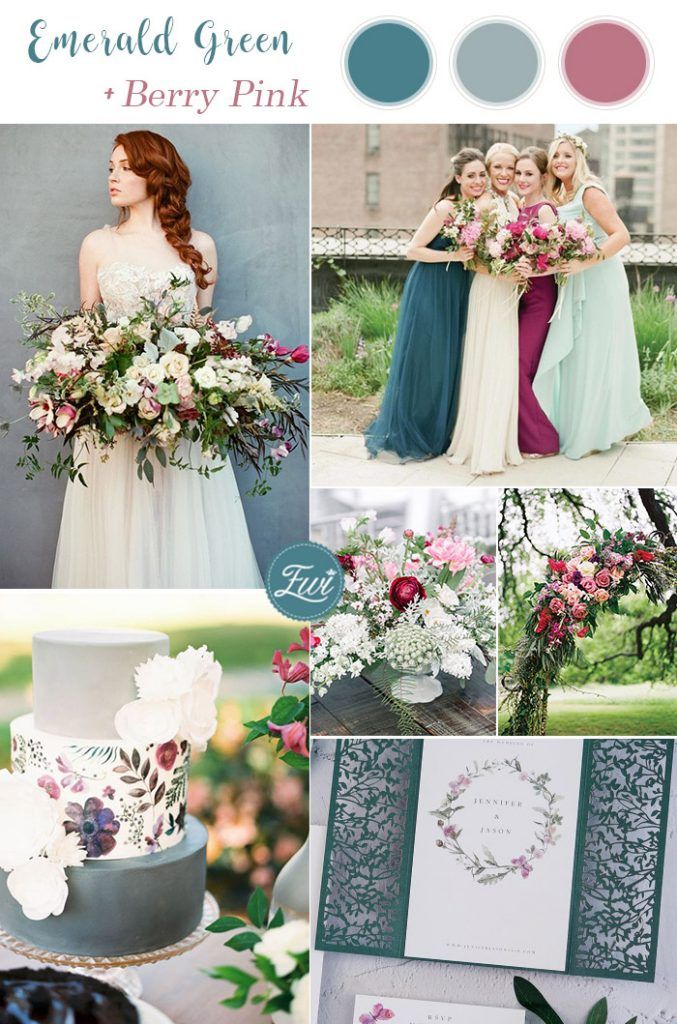 Изумрудно-зеленый и ягодно-розовый. Очень свежее сочетание, которое еще никто не использует. Идеально подходит для свадьбы в стиле Fine Art.