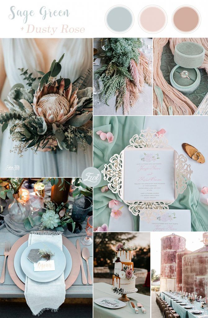 Серебряный шалфей и пыльно-розовый. Еще одна палитра с пыльно-розовым и одним из фаворитов этого сезона — серебряным шалфеем. Очень необычная и стильная цветовая гамма.