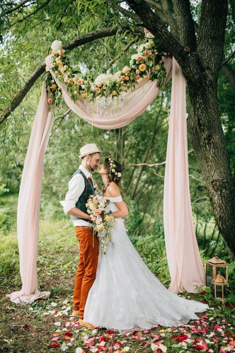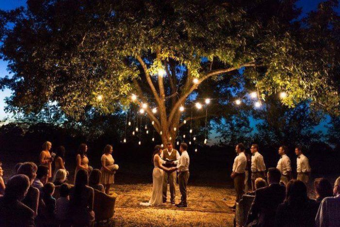 В концепцию зеленой эко-свадьбы идеально вписывается церемония у дерева. Если ты мечтаешь о чем-то необычном и очень романтичном, то обязательно рассмотри этот вариант.