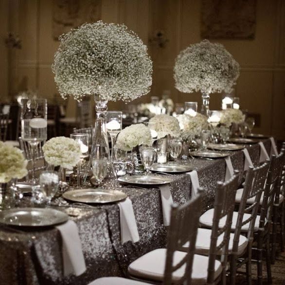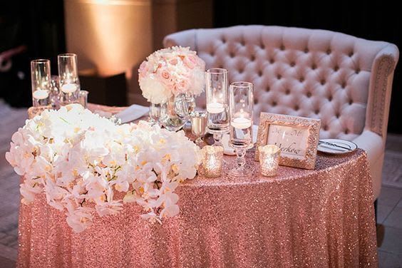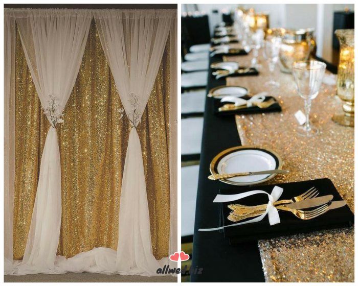 Ткань с глиттером идеально подойдет для декорирования столов и свадебной арки.