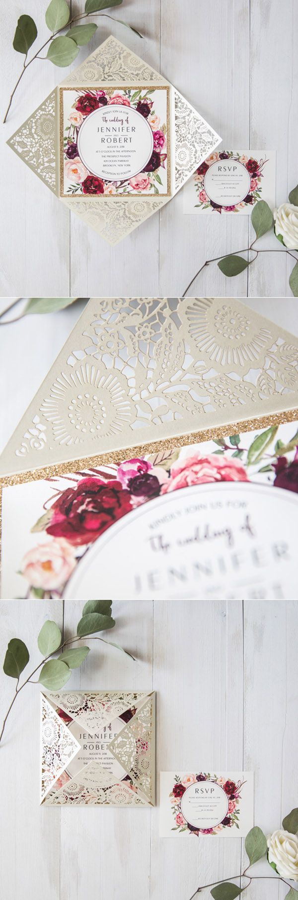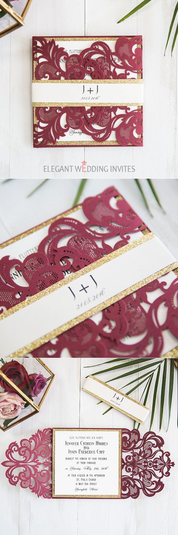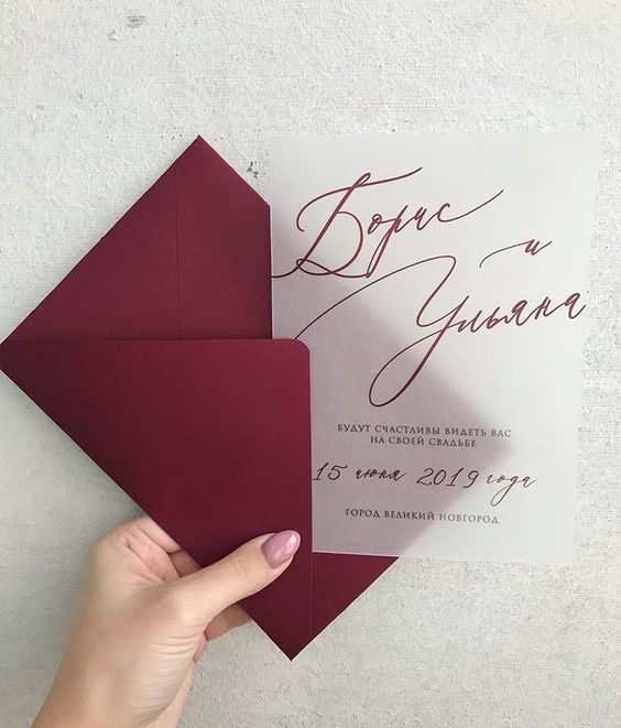 Втім, інші стилі весільних запрошень також будуть чудово поєднуватись із бордовим кольором.