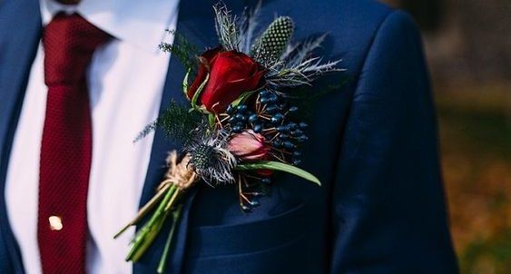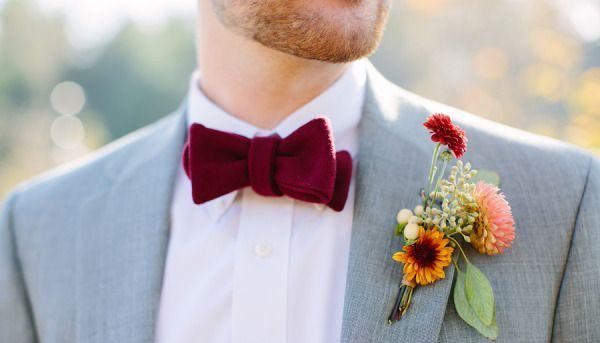 Образ нареченого. Бутоньєрка, краватка/метелик або взуття бордового кольору не тільки підкреслять колір вашого весілля, а й стануть стильними акцентами в образі нареченого.