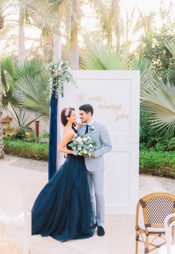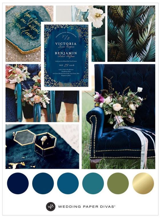 Сочетание классического синего и бордового или сливового идеально подойдет для осенней свадьбы. Посмотри, как они прекрасно дополняют друг друга.