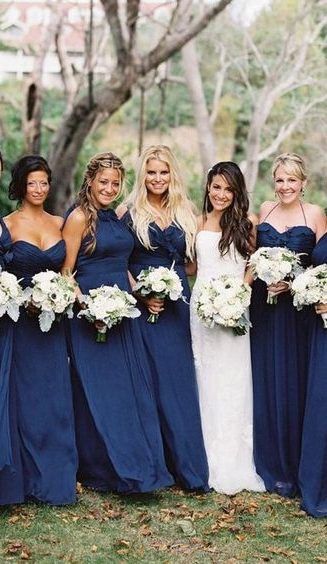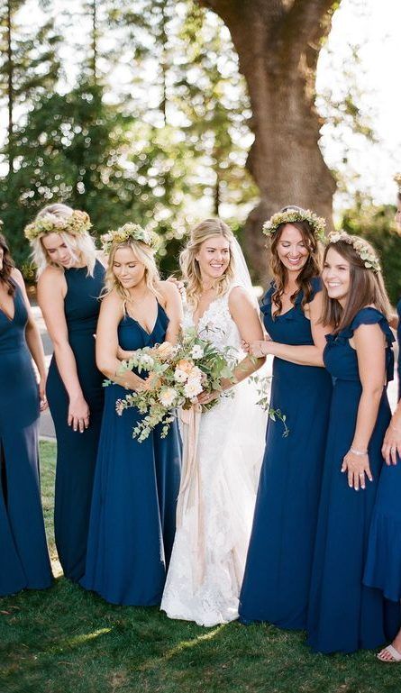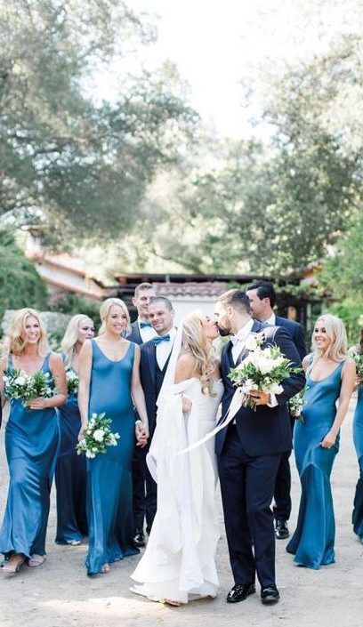Classic Blue — это шикарный цвет для платьев подружек невесты. Он настолько универсальный (не темный и не светлый, не яркий, но и не приглушенный), что подойдет каждой. Это тот случай, когда можно смело выбирать один цвет для нарядов подружек.