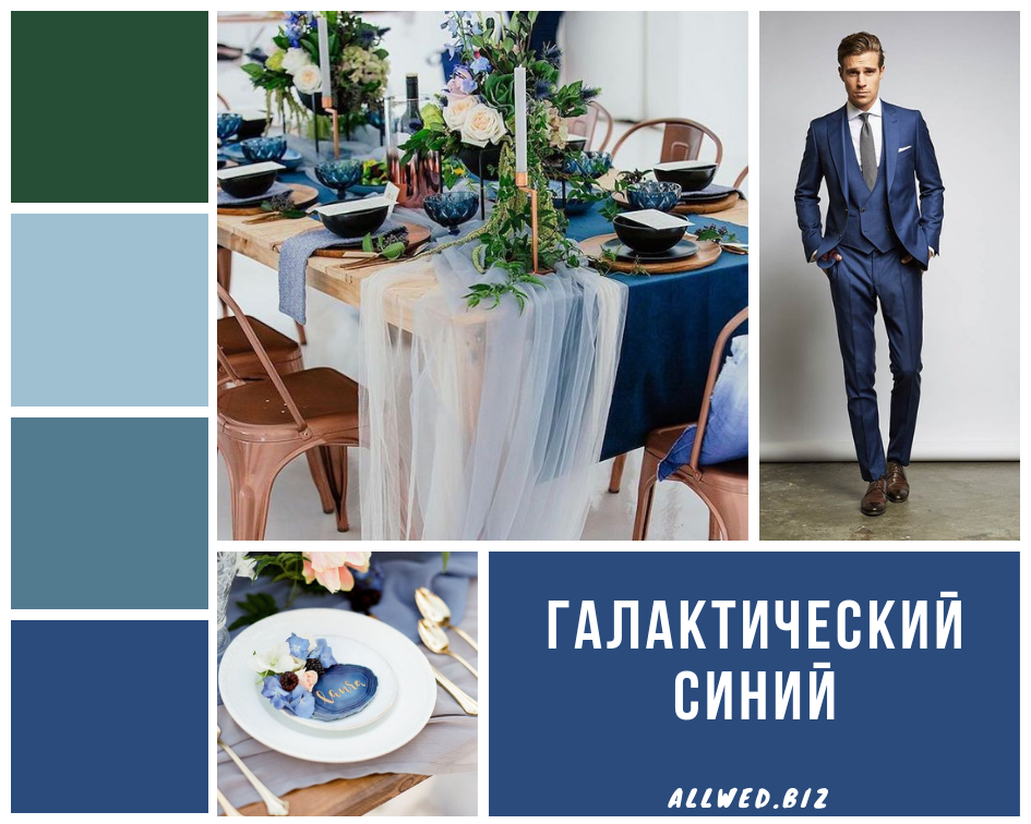 Галактический синий (Galaxy Blue). Глубокий и в меру яркий синий цвет. Чудесно будет смотреться и в декоре осенней свадьбы, и на фоне белоснежной зимы. И этот цвет идеально подойдет для свадьбы в стиле созвездий.
