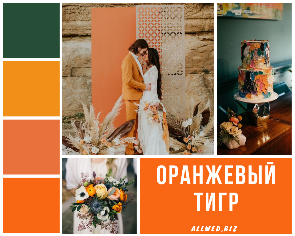 Оранжевый тигр (Orange Tiger). Яркий оранжевый идеально подойдет для осенней свадьбы. А в зимние холода он добавит тепла и солнца вашему торжеству.