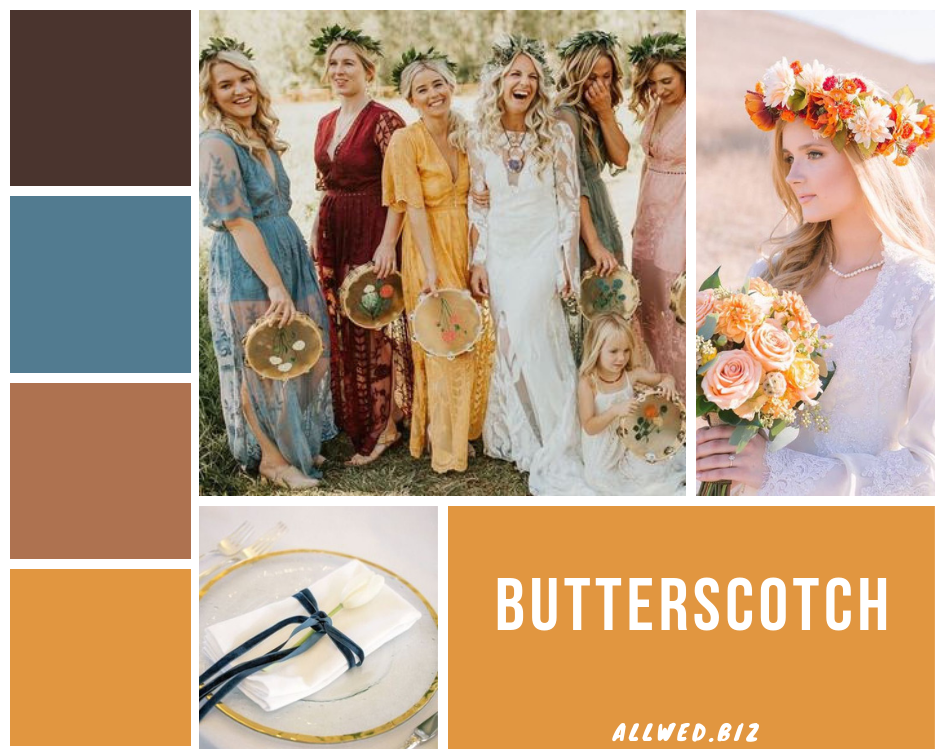 Сахарный миндаль (Sugar Almond). Еще один коричневый оттенок в палитре «Осень-зима 2019-2020». Вкусный и карамельный коричневый прекрасно подойдет для любого стиля свадьбы: от классики до индустриального.