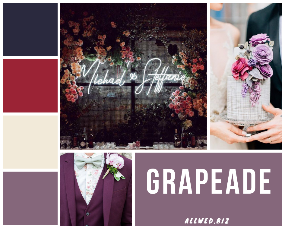 Grapeade. Единственный фиолетовый оттенок в палитре Pantone для осени 2019 и зимы 2020. Этот теплый и приглушенный цвет станет чудесным акцентом в свадебном декоре и деталях.