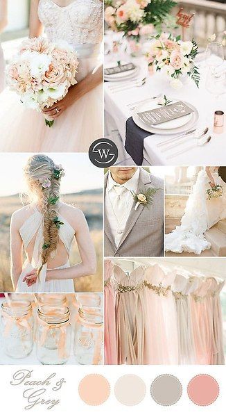 Нежная палитра получится с оттенками серого — идеальный вариант для классической свадьбы.