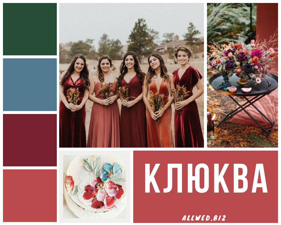 Клюква (Cranberry). Глубокий и в меру яркий красный цвет. Идеальный для осенней и зимней свадьбы. Чудесно смотрится в сочетании с другими оттенками.