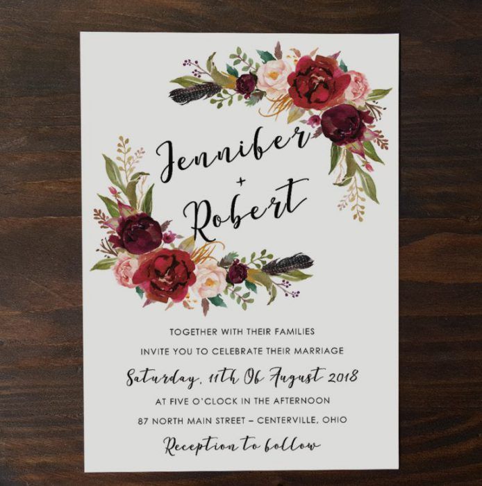 Эта палитра собрала все оттенки осени: золотые листья кленов и бордовая листва дикого винограда. Превосходный выбор для элегантной свадьбы.