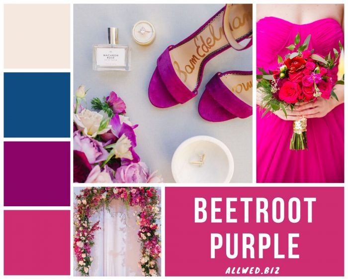 Beetroot Purple (Пурпурная свекла). Очень смелый и яркий оттенок фуксии. Позволяет создавать потрясающие цветовые палитры. Кстати, он может проявиться в свадебном декоре в виде неона, который будет на пике популярности в этом свадебном сезоне.