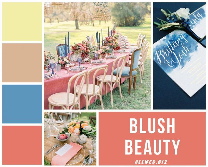 Blush Beauty (Румяна). Ни одна палитра Пантон не обходится без цвета румян. В этом сезоне актуальным будет не пыльный оттенок, а в меру насыщенный и теплый. Он чудесно выполнит роль как базы декора, дополняя другие оттенки, так и может быть основным цветом свадьбы (в такой роли он идеально подойдет для классического торжества).