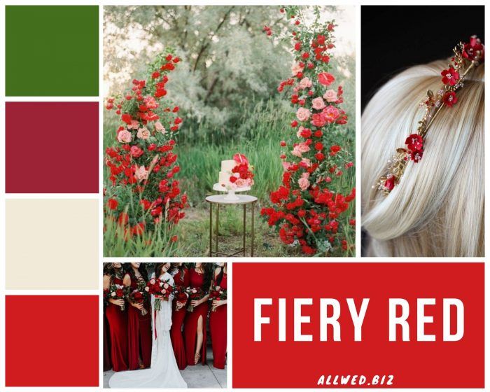 Fiery Red (Огненно-красный). Цвет страсти, динамичный и энергичный красный, который невозможно не заметить. В небольших количествах он подчеркнет акценты, а в качестве основного цвета точно привлечет внимание всех окружающих. Идеально подойдет для ярких и уверенных в себе пар.
