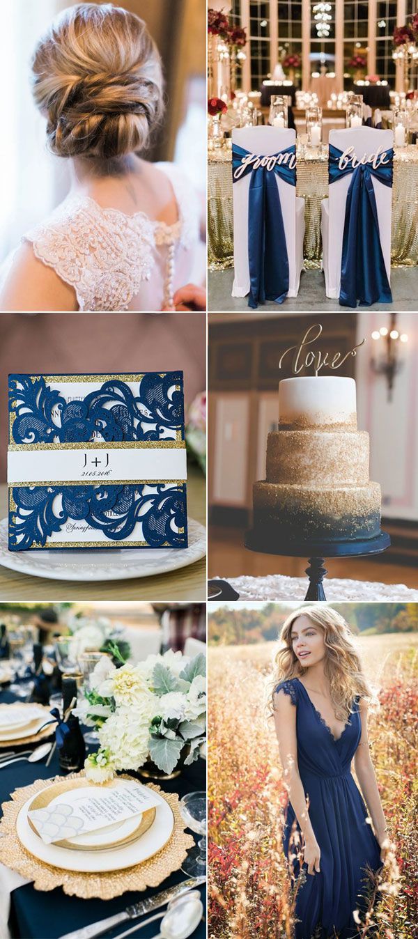 Синий и золото. Самые различные оттенки синего лучше всего подходят для зимней свадьбы. Если вы хотите придать вашему торжеству роскошь и лоск, тогда выбирайте сочетание синего и золота.