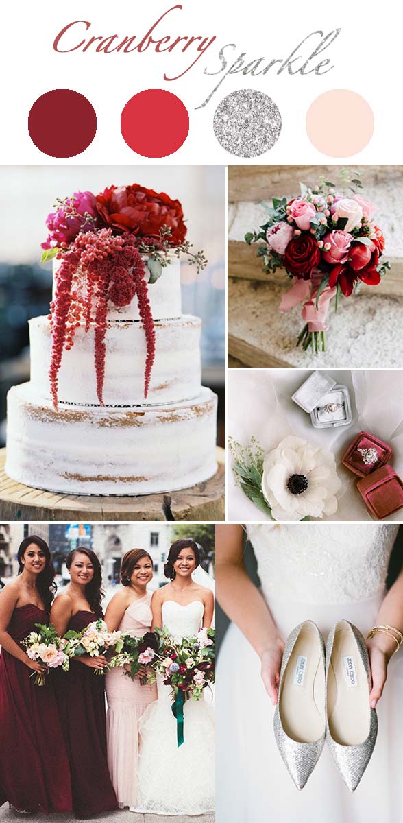 Клюква и серебро. Это цветовое сочетание подойдет для пар, которые любят яркие решения и всегда оптимистично смотрят на жизнь. Элегантная и в то же время жизнерадостная палитра, которая безупречно впишется в любой пейзаж и помещение.