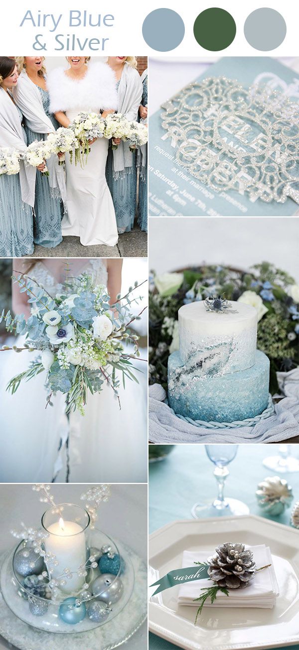 Голубой и серебро. Для романтичных пар лучшим решением станет сочетание нежно голубого цвета и серебра.