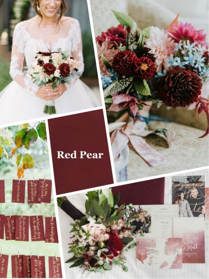 Червона груша (Red Pear). Дуже красивий глибокий червоно-бордовий колір. Чудовий колір розкоші, який ідеально поєднується з золотом. Гідна альтернатива популярній марсалі.