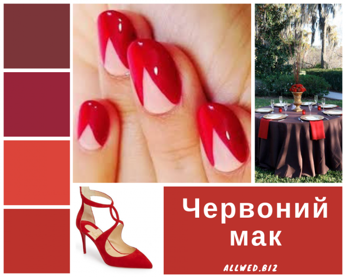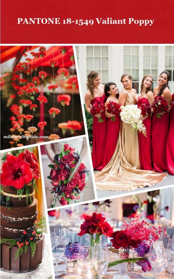 Червоний мак (Valiant Poppy). Сміливий червоний колір, який можна використовувати як основний або для яскравих акцентів в декорі чи образі молодят.