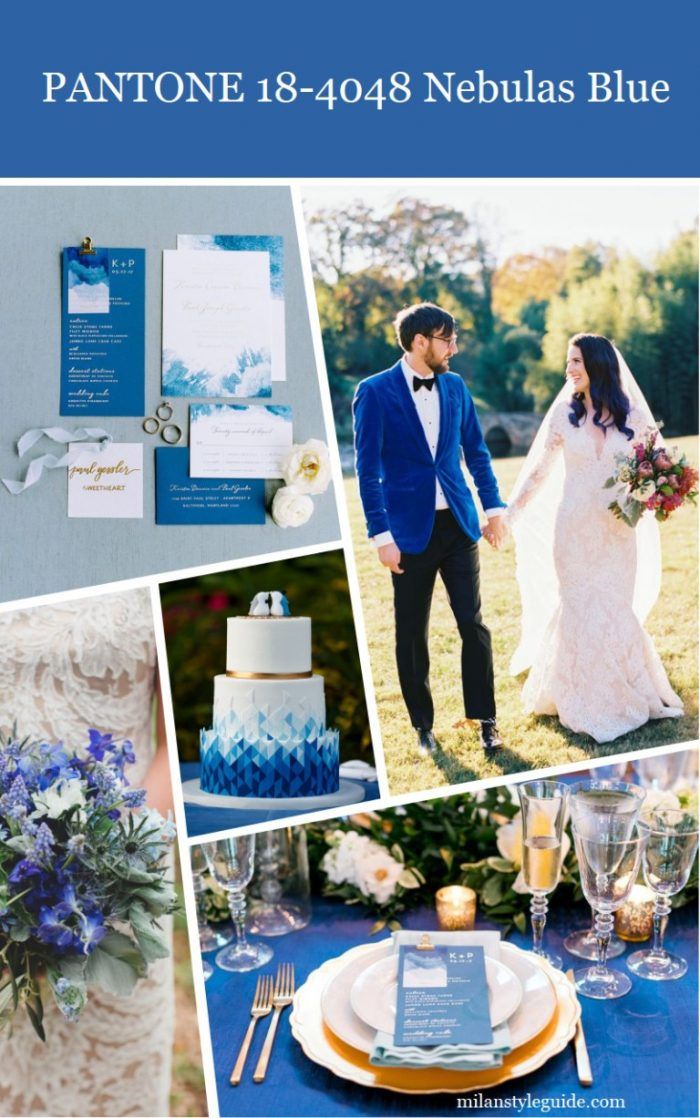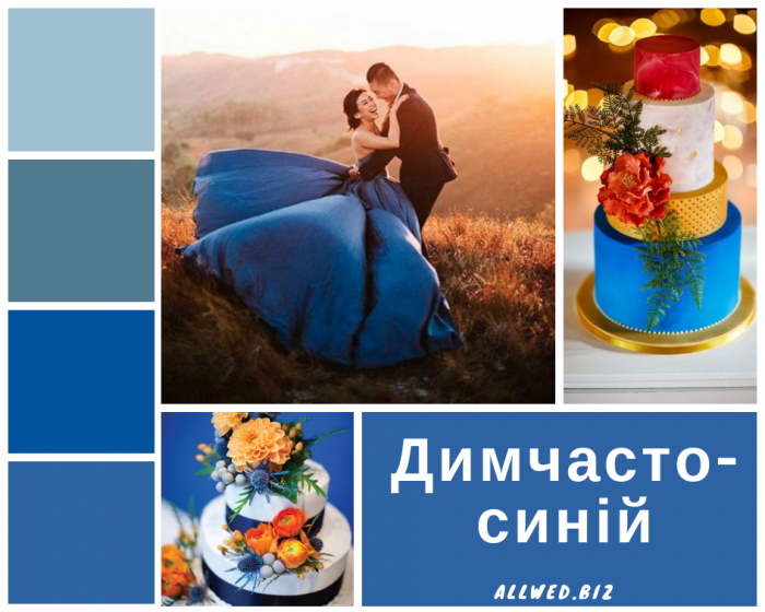 Димчасто-синій (Nebulas Blue). В міру яскравий і в міру приглушений відтінок синього, котрий ідеально підходить для зимового весілля. Цей спокійний синій колір створює яскраві і елегантні палітри.