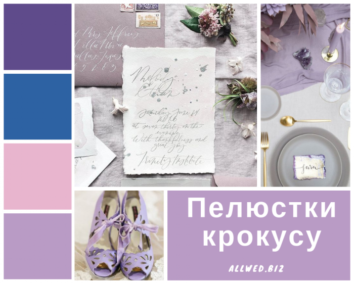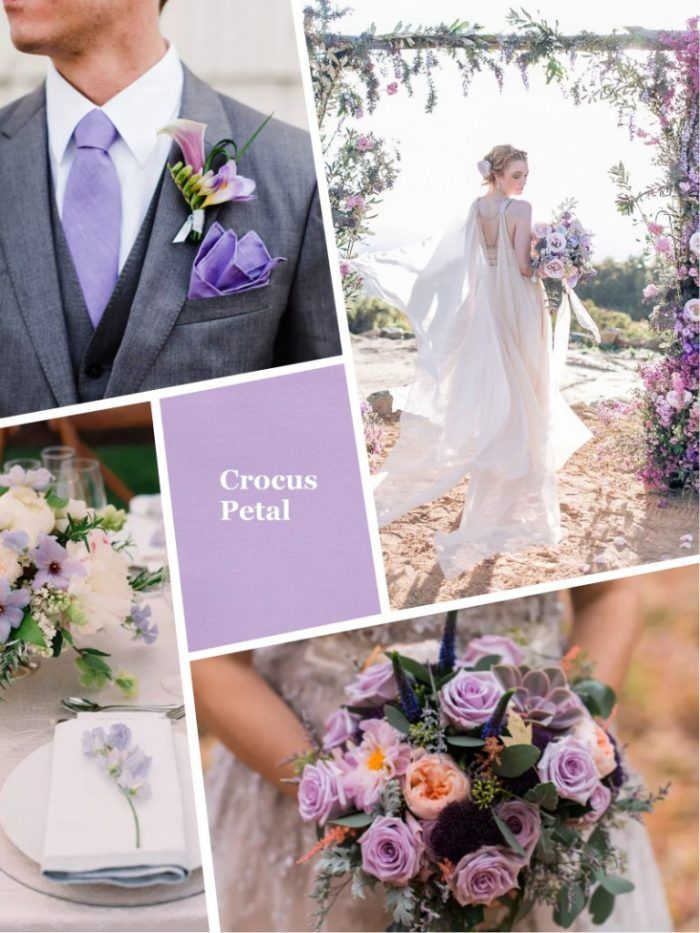 Пелюстки крокусу (Crocus Petal). Дуже витончений ліловий відтінок. Романтичний і жіночний, він бездоганно доповнить ніжне весілля з вишуканою атмосферою.