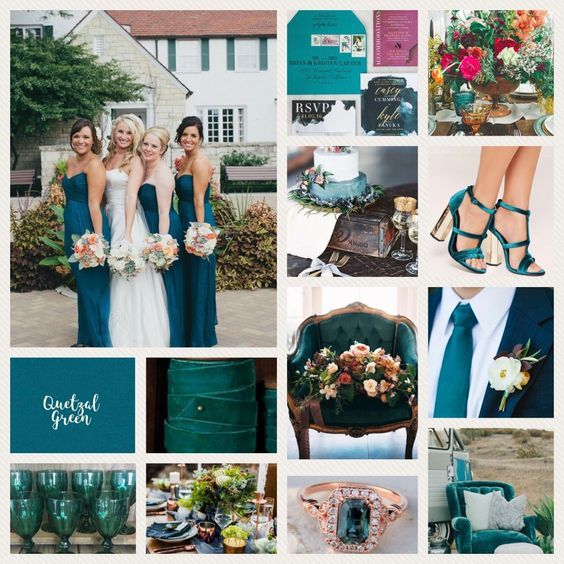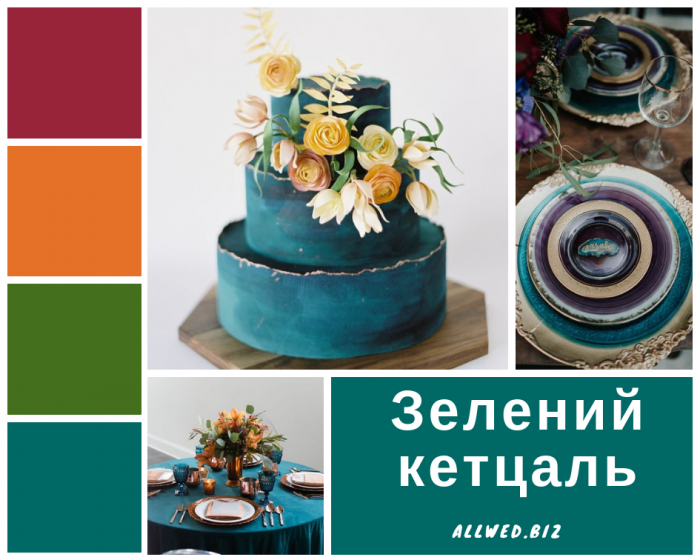 Цей глибокий синьо-зелений колір виглядає дуже елегантно і додасть в будь-яке весылля нотку розкоші і витонченості.