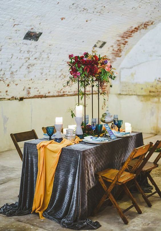 Неймовірно красиво в цьому кольорі виглядає костюм нареченого і столовий текстиль.