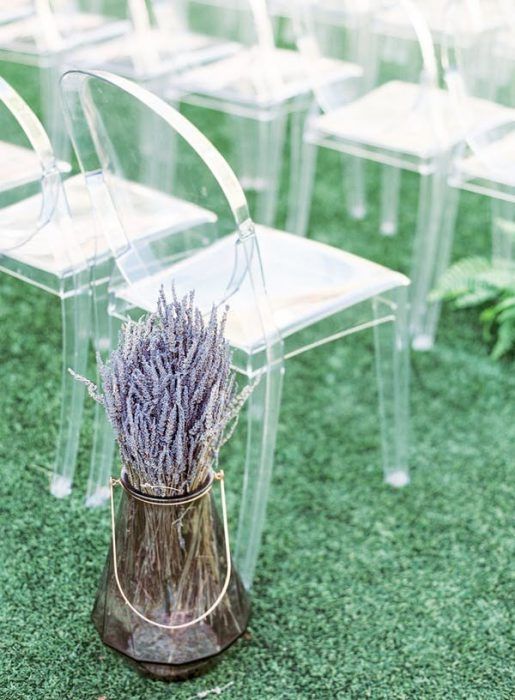 Звичайно, найкращим місцем для проведення весілля в лавандовому стилі стануть лавандові поля. Але їх цілком можна замінити букетами лаванди та флористичними композиціями з нею.