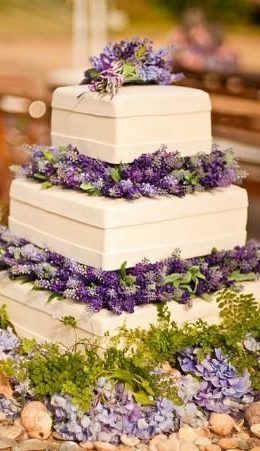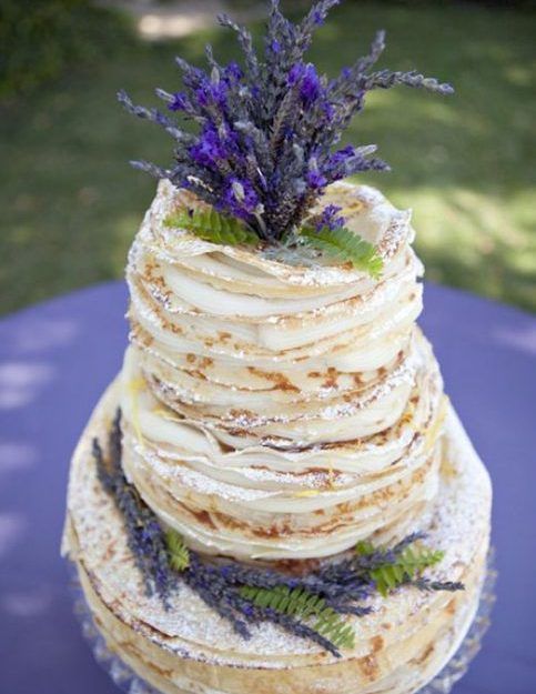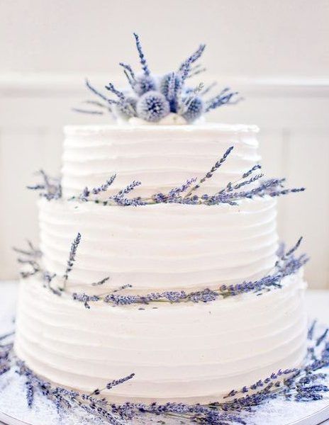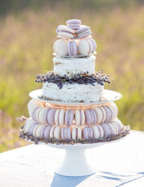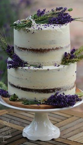 Лавандовий торт на весілля може бути найрізноманітнішим: просто білим з гілочками лаванди, бузкового кольору, «голий» торт …