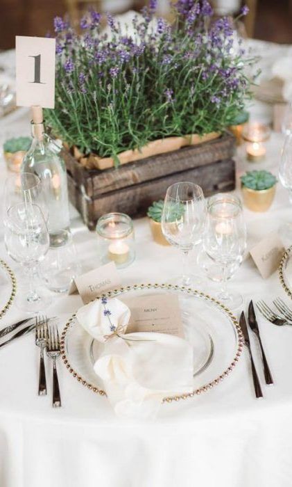 Весілля в лавандових тонах відмінно поєднується зі стилем прованс. Створюючи декор для лавандового весілля, візьміть за основу спокійні кольори французьких полів та наповніть весілля простими деталями. Лавандовий колір весілля відмінно доповнять ковані елементи, кошики, плетені меблі та вінтажні валізи.