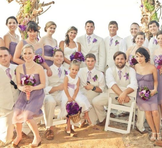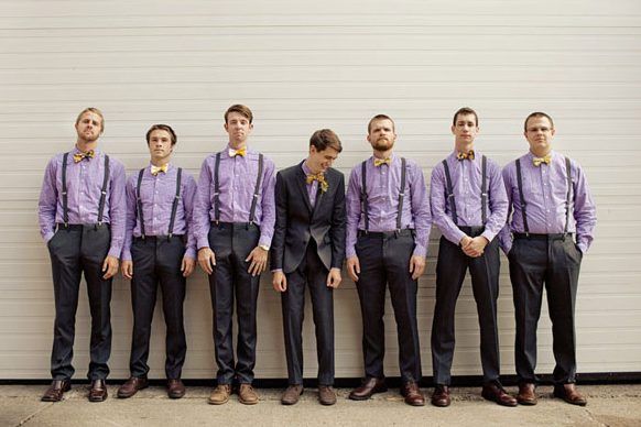 Для друзів нареченого варто підібрати однакові елементи одягу в лавандовому кольорі.