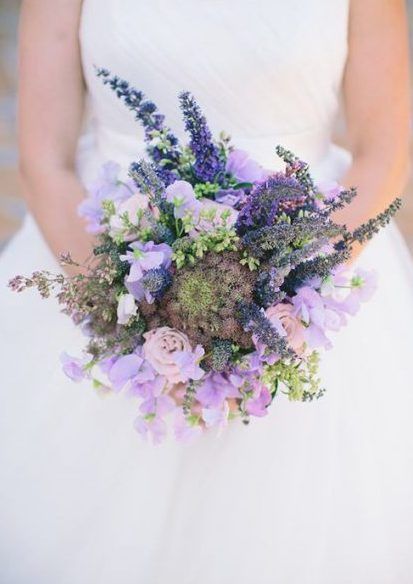 Букет нареченої з лаванди виглядає скромно і вишукано.