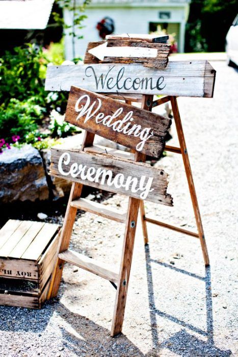 Если ваша свадьба планируется в стиле шебби-шик или эко стиле, деревянная лестница-стремянка может выполнить роль карты рассадки или указателей различных зон проведения торжества.