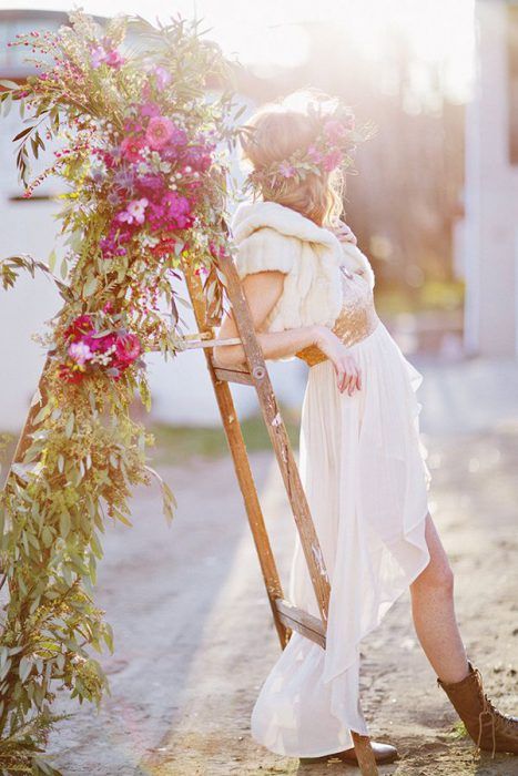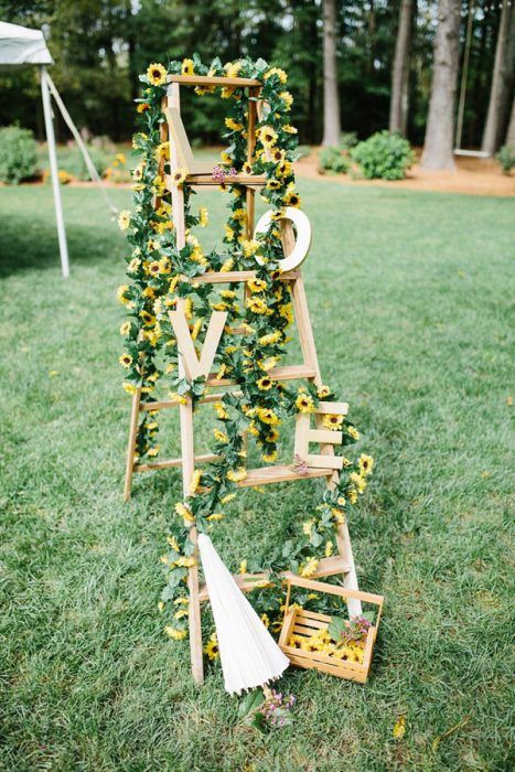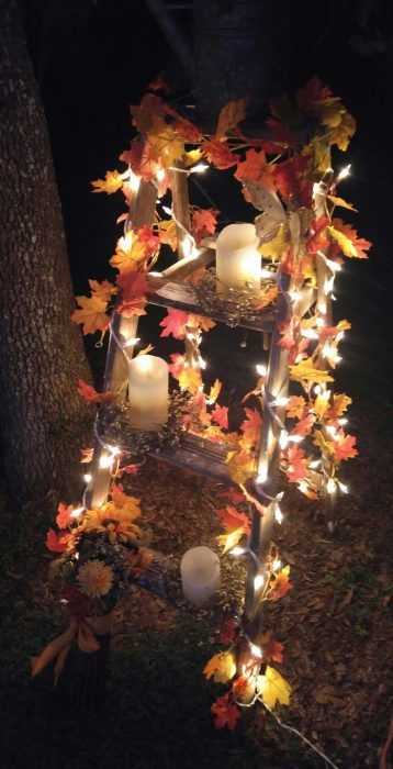 Украсьте лестницу-стремянку живыми цветами, свечами или фонариками. Гости не устоят и обязательно сделают фото на память. Да и для вашей фотосессии она тоже будет кстати.