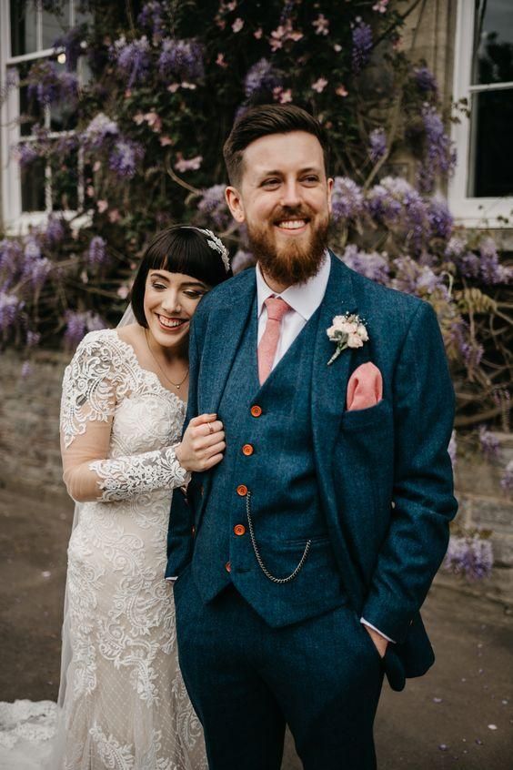 Но здесь важно иметь в виду, что последние годы большинство женихов (или невест :)) выбирали именно синий цвет и его стало слишком много. Поэтому лучше выбрать для костюма жениха серый цвет или необычный оттенок синего.
