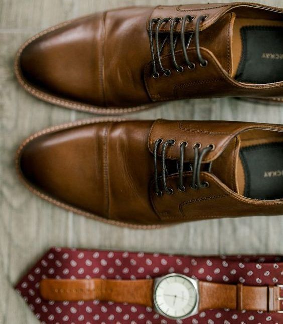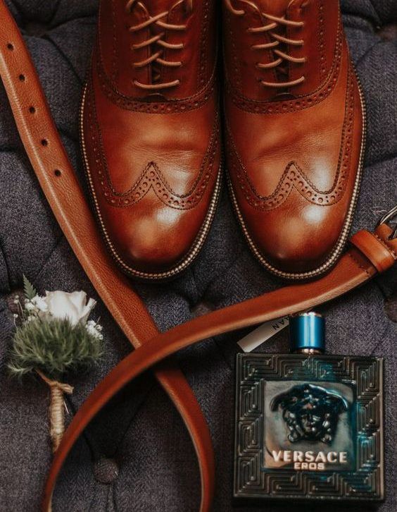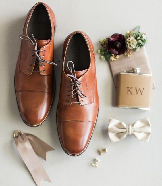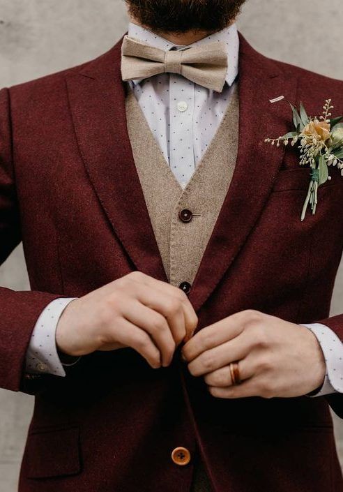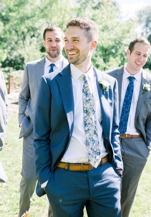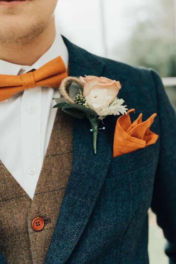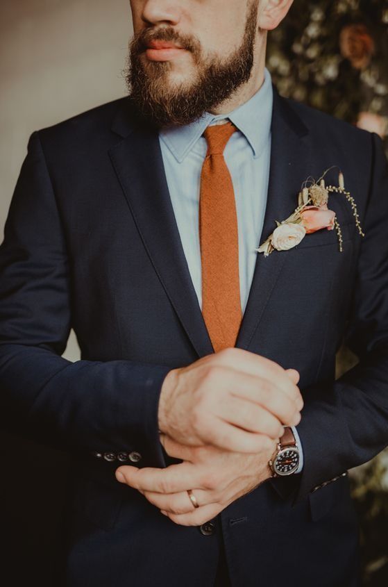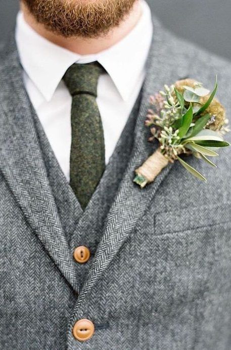 К синему, серому и зеленому костюму идеально подойдут коричневые аксессуары, которые тоже в тренде в этом свадебном сезоне.