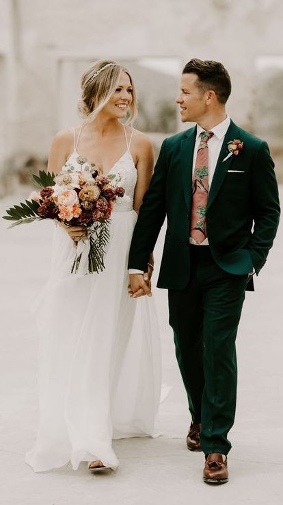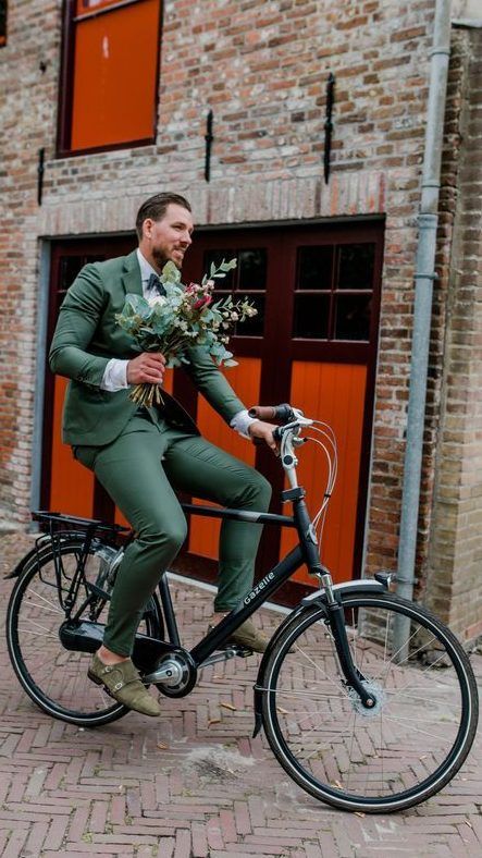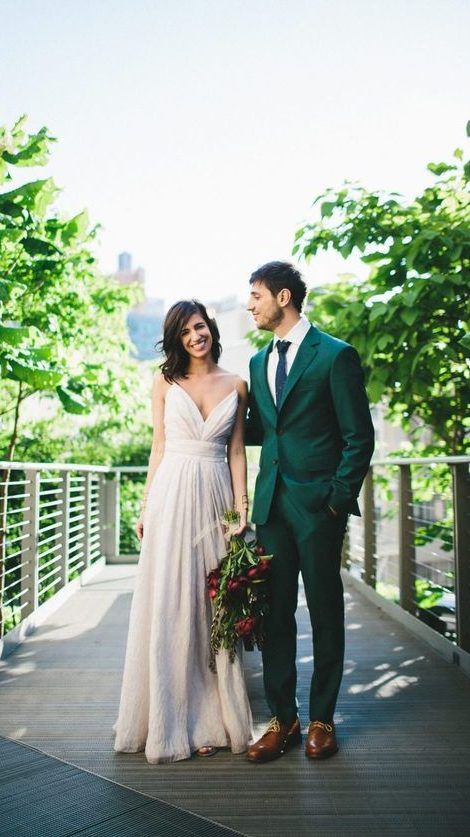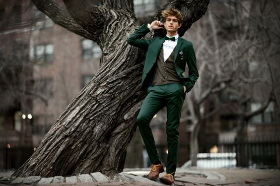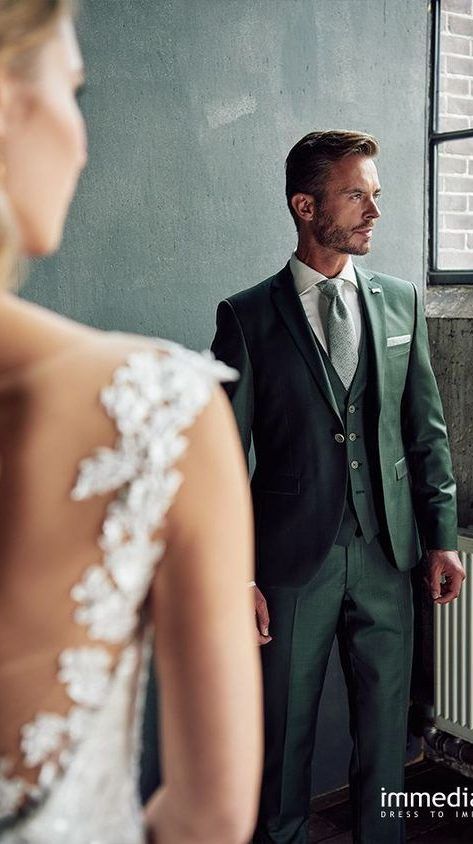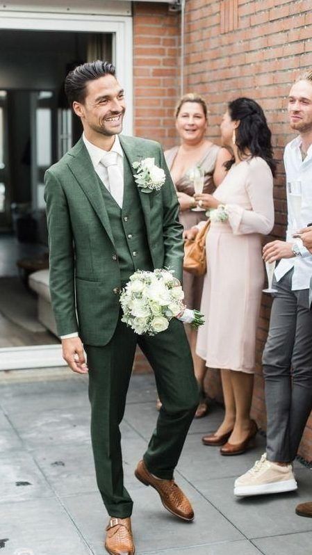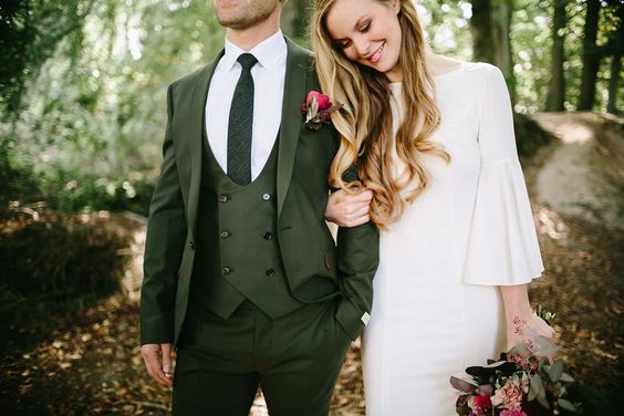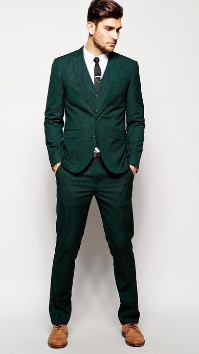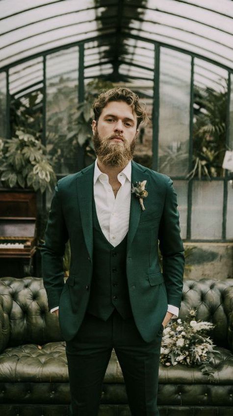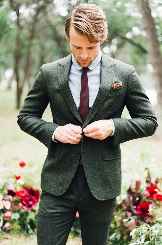 • зеленый костюм — еще один стильный ход при создании образа жениха. Если по каким-то причинам тебе не нравится серый, синий или классический черный цвет, то остановись на более ярком образе жениха.