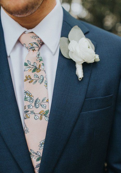Если хочешь добавить оригинальности образу жениха — выбери ему яркий галстук. Цветочный принт, горошек или яркий цвет сразу привлекут к себе внимание. Но делая выбор в пользу такого аксессуара, обязательно посоветуйся с женихов — возможно, он не готов к столь необычному и привлекающему внимание аксессуару в своем образе.