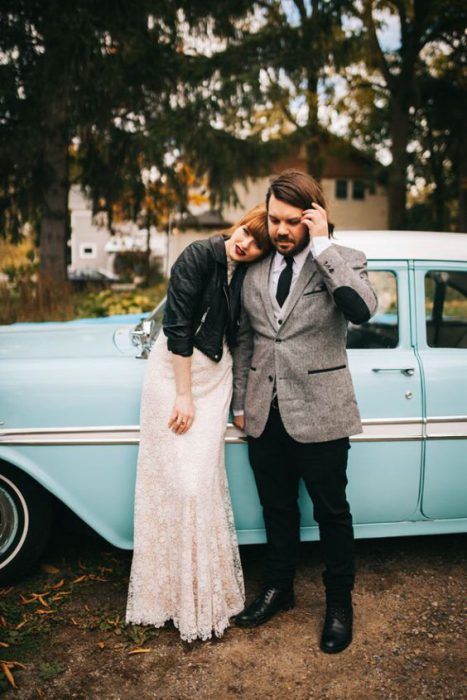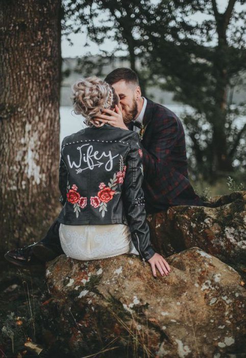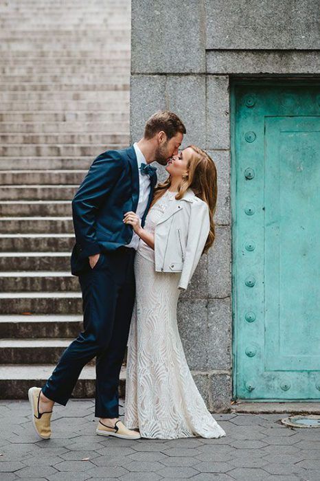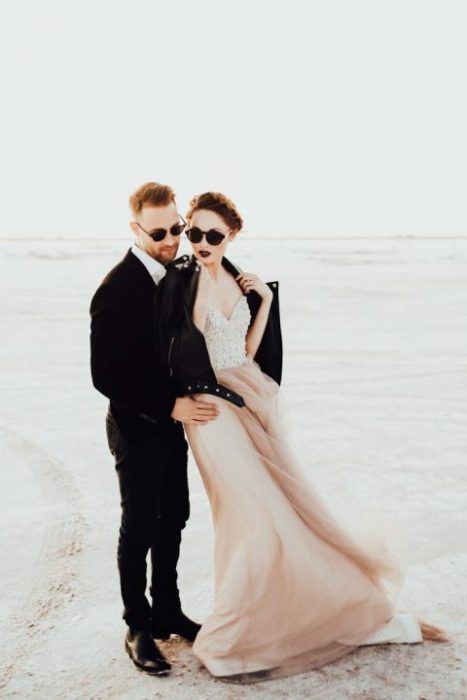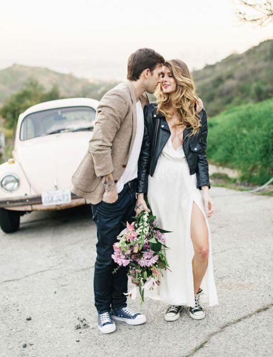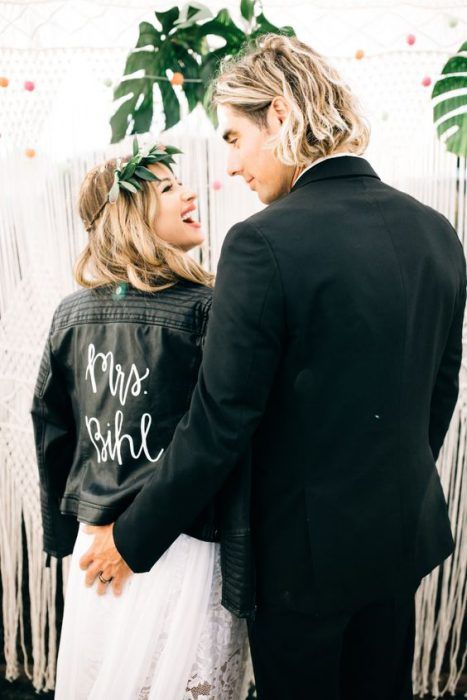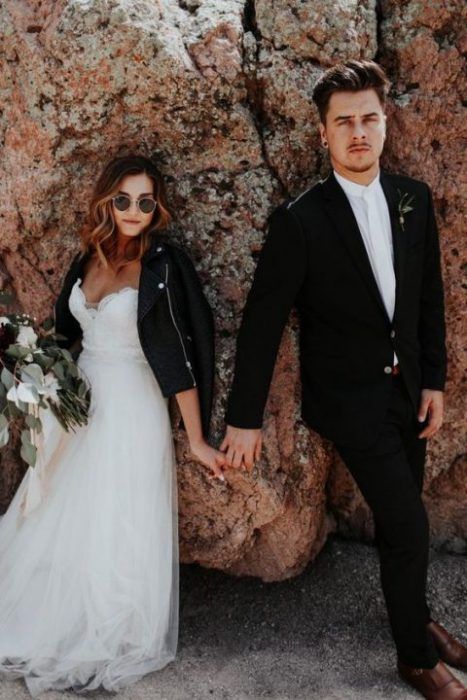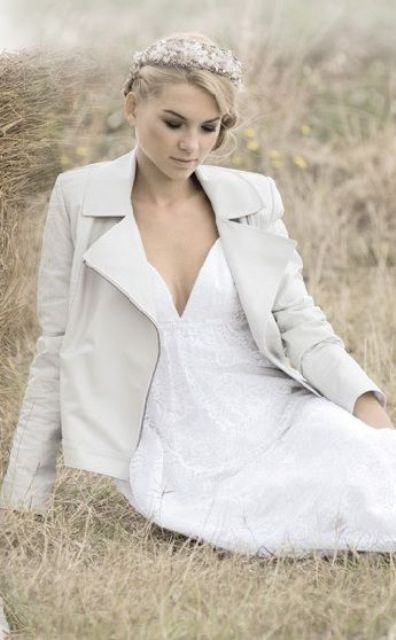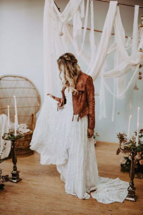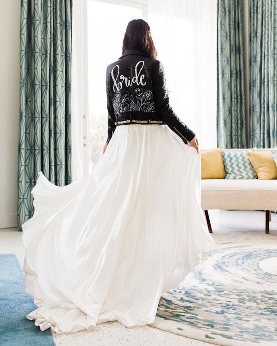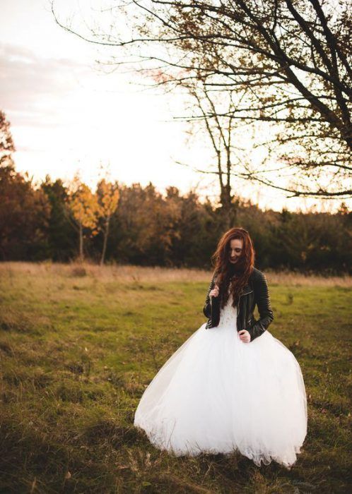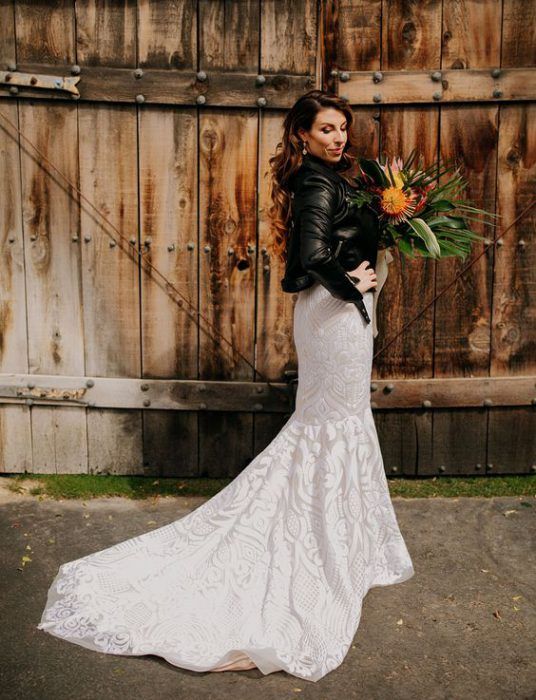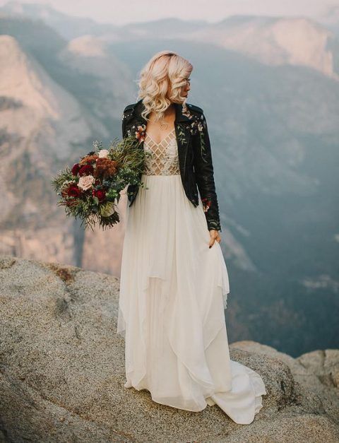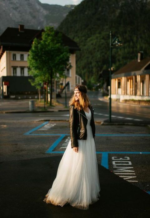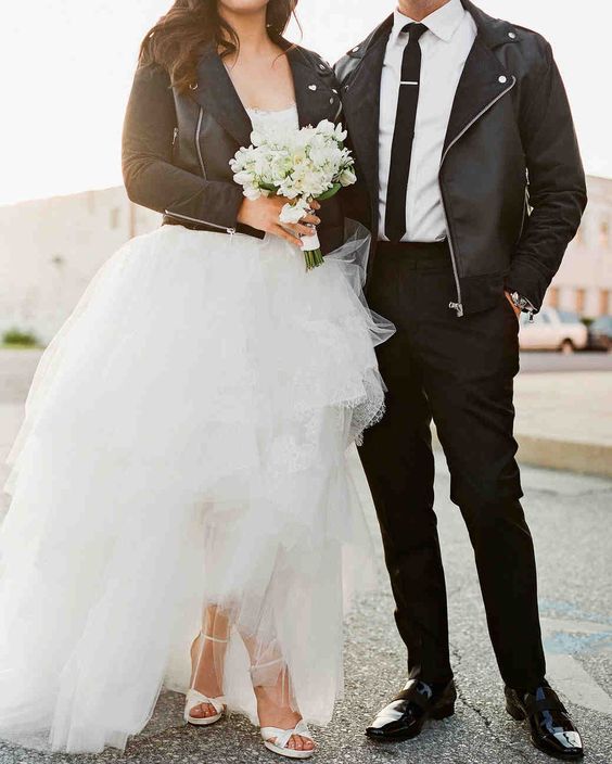 Если ты следишь за трендами, то тебе будет интересно знать, что именно кожаная курточка будет актуальной в этом свадебном сезоне. И это неудивительно — ведь контраст нежного свадебного платья с кожаной курточкой получается невероятно стильным.