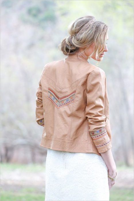 Также обрати внимание на кожаные курточки, украшенные вышивкой, молниями, стразами или жемчужинками.