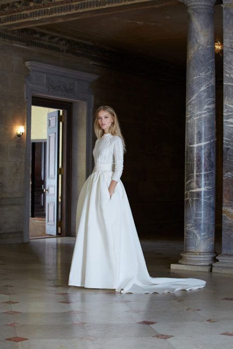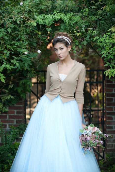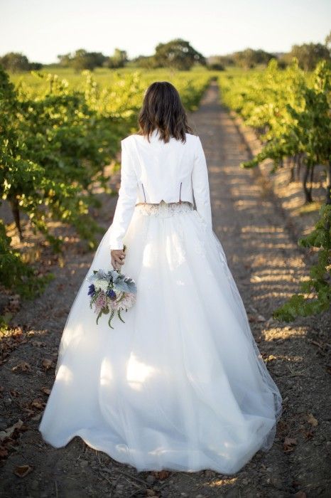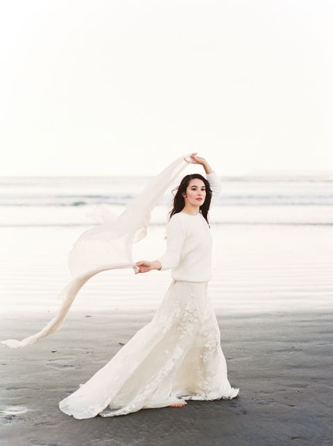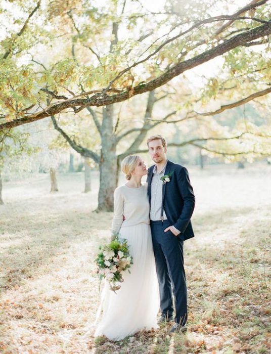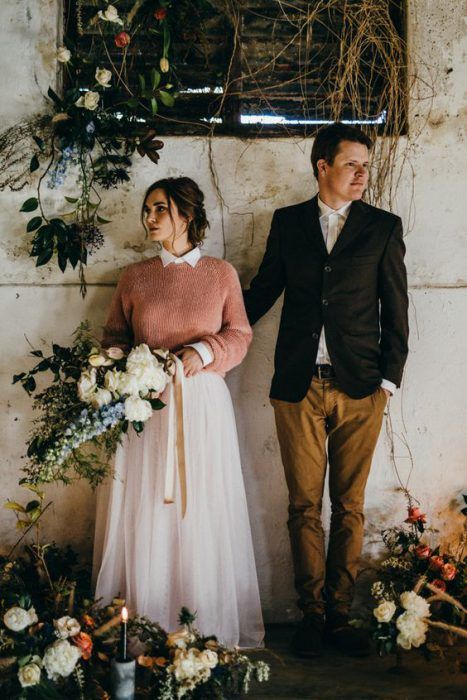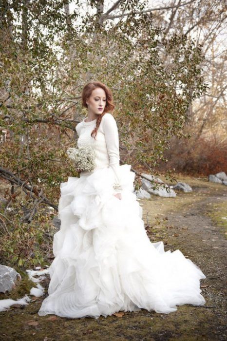 Кстати, если ты готова к экспериментам, то можешь вообще отказаться от свадебного платья в пользу юбки и свитера.