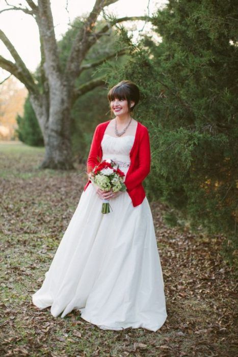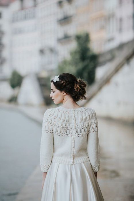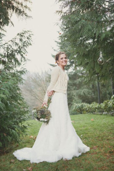Кстати, он не обязательно должен быть коротким. Длинный кардиган тоже отлично смотрится в образе невесты.