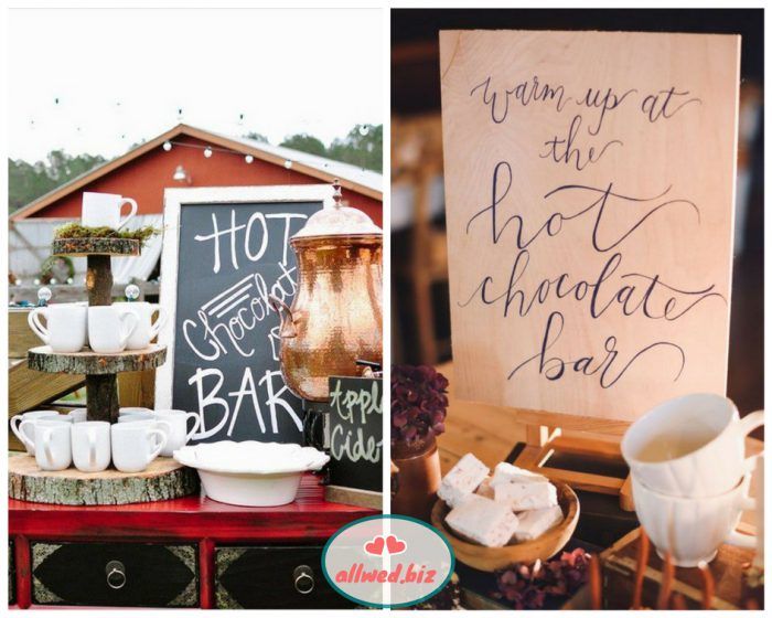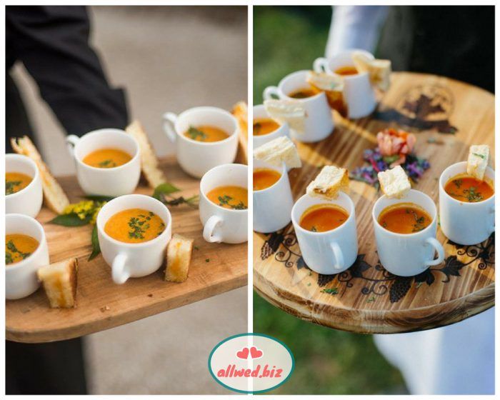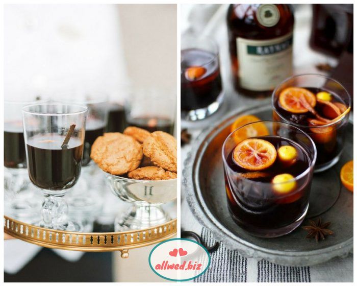 Осень вносит коррективы не только в образ невесты и декор, но и даже в угощения для гостей. То, что идеально подходит для летнего торжества (холодное шампанское, candy-bar с мороженым) будет совсем неуместным на осенней свадьбе. Кому захочется мороженого в прохладный осенний день? Думаем, что очень немногим!