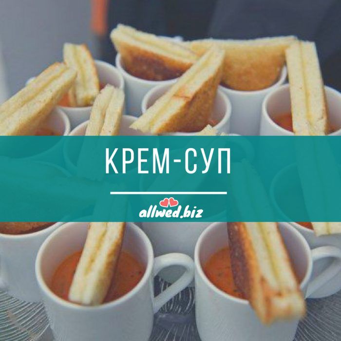 Грибной, тыквенный или томатный крем-суп, поданный порционно с тостами или гренками, отлично утолит голод гостей.