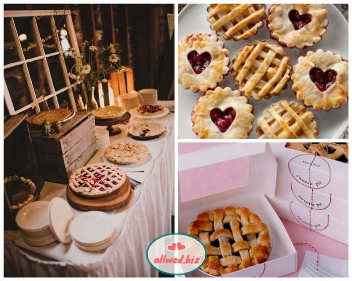 Традиционный candy-bar осенью можно дополнить пирогами с различными начинками: грибы, курица, капуста, яблоки, груши. И соленые, и сладкие пироги точно понравятся гостям любого возраста. Когда как не осенью кушать ароматные пироги?!