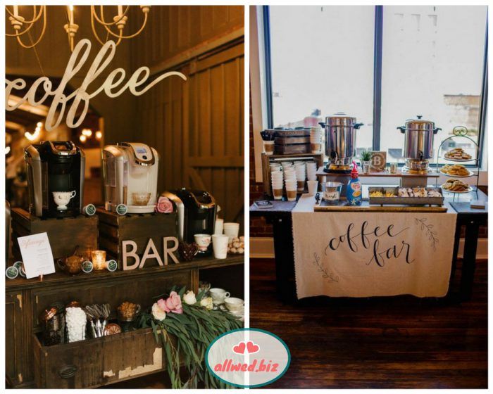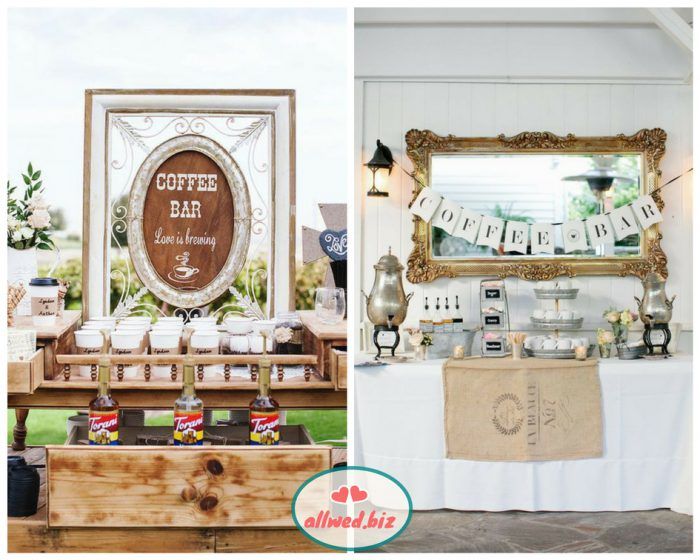 Станция с горячим кофе или чаем — это отличное решение для осенней свадьбы. Гости смогут согреться и насладиться ароматным кофе или чаем. Особенно это будет актуально для тех, кто не пьет алкогольные напитки.