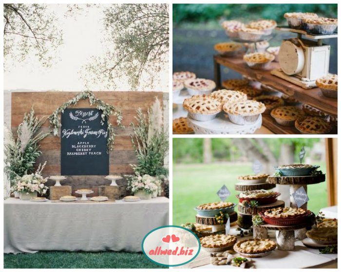 Традиционный candy-bar осенью можно дополнить пирогами с различными начинками: грибы, курица, капуста, яблоки, груши. И соленые, и сладкие пироги точно понравятся гостям любого возраста. Когда как не осенью кушать ароматные пироги?!