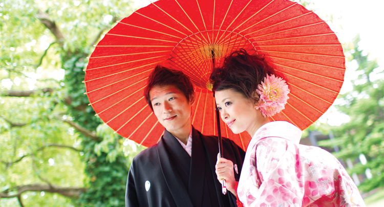 К сожалению, цветущая сакура на японской свадьбе не присутствует, т.к. период ее цветения приходится на январь-апрель (в зависимости от региона), а свадьбы принято справлять в строго определенные дни. В основном эти дни приходятся на лето, но есть несколько благоприятных дней и в октябре.