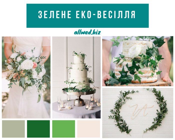 Стиль еко і ботанік, як і раніше, займає першу сходинку весільного хіт-параду. Якщо тобі близька ця тема — сміливо використовуй її. Ідеально — якщо ти доповниш її унікальними деталями вашої пари (історія знайомства, ваші захоплення і т.д.).