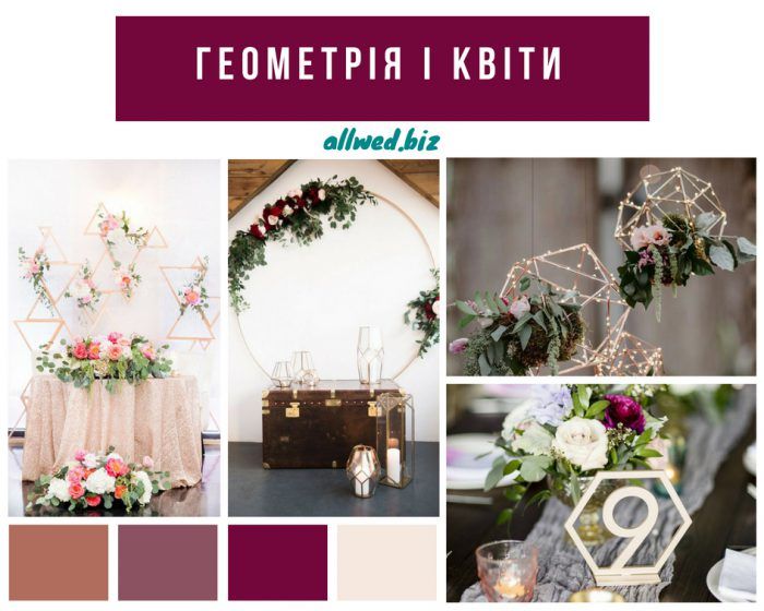 На стику двох популярних останнім часом стилів — геометрії і квітковому — виник новий, який об’єднав їх. Вийшов дуже стильний дует, в якому чіткі геометричні форми пом’якшують ніжні квіти.